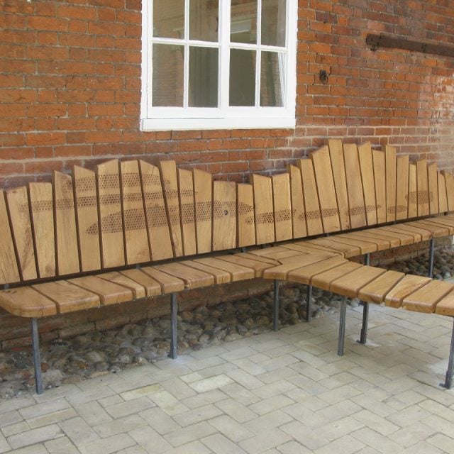 Our benches are reasonably-priced as you are only paying for us and the materials. We are a small workshop in rural Suffolk with low overheads- you are not paying for a large office, company directors or shareholders’ dividends. The all-in cost depends on the size of the bench….. the complexity of the design and decoration…… the number of workshops with your local community groups…… the presence of some suitable local oak that you may be able to supply us……. the distance we need to travel…. how good your coffee is….. and will generally sit between £5,000-25,000. But we are flexible and always willing to work to a budget and build your Bench Project around your needs….. your resources……. your community. And we also love a challenge so are happy to talk about any job you can imagine.