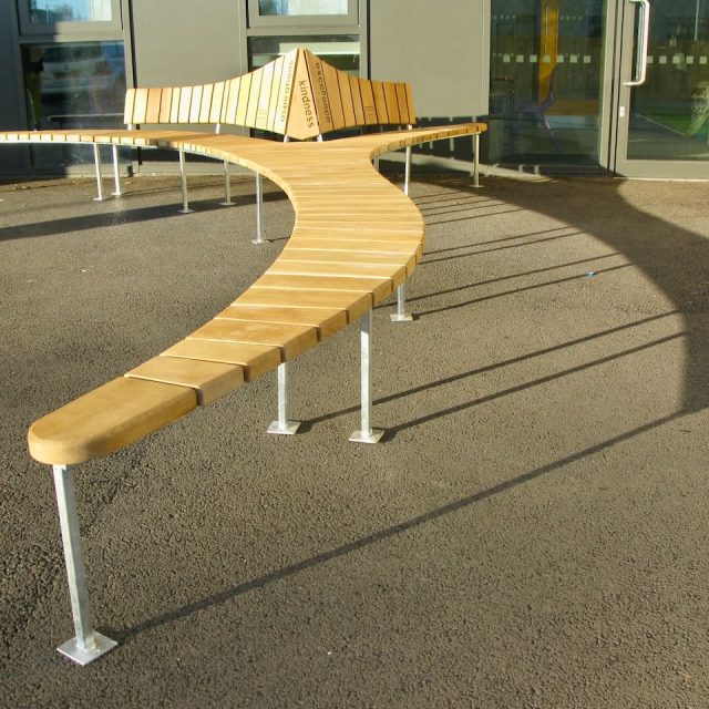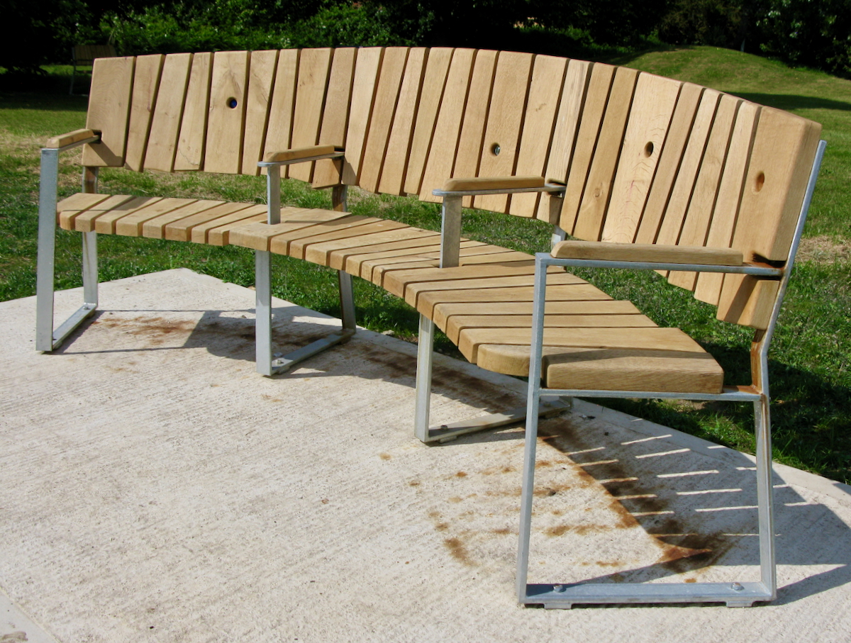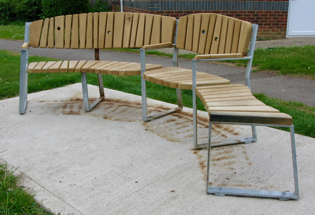 So our benches are gently curved so that people sit aligned in a way that encourages conversation but doesn’t force it. The curve needs to be just enough to facilitate eye-contact and the chance of a chat…… without being too horseshoe-like as that would leave you eyeball-to-eyeball with a stranger and so you probably wouldn’t sit down were somebody else already occupying the bench. So “not too curved, nor too straight, but just right…..”, as Goldilocks never said.
