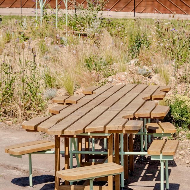 Our benches are made by us in our workshop in Stratford St. Mary, Suffolk with the galvanised steel frames made to our specification by our friends at Sharp Metalworks in Manningtree, Essex. We also work with our colleague Blue King to prepare and run the design workshops and source all our local, sustainable, needs-must-felled English oak from the conservation work of the lovely volunteers of the Greenways Countryside Project in the parks of Suffolk.